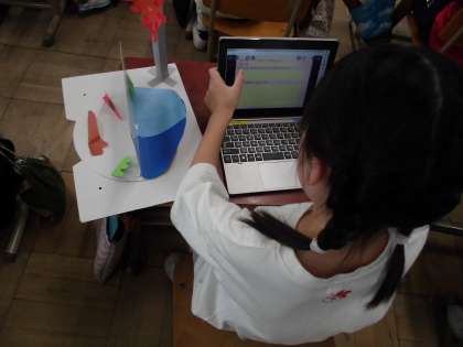ロイロノートを使って、頑張ったところや工夫したところを書いたり、友だちの作品を見てすてきなところを見つけたりしました。