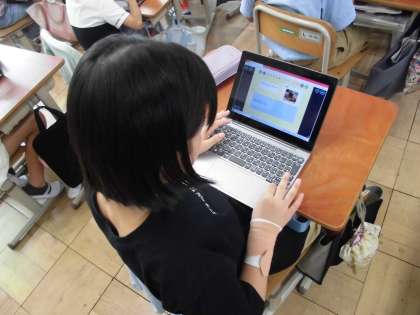 今回は、障碍者のある方に対してのすみやすくなるための工夫について、前回の活動に加えて自分なりに調べ、交流する活動を行いました。実際には自分たちの身の回りにたくさんの工夫がされていることを知り、びっくりしている様子でした。