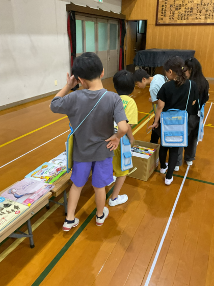 今日の一時間目に図書館に置く、新しい本を選びに行きました。これからどんな本を読みたいかを考えながら選んでいました。