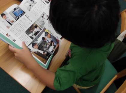 今日は国語の学習で、自分の興味のある仕事について図書室で調べ学習をしました。