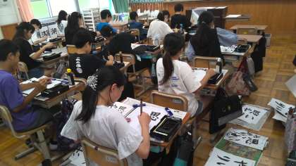 今日は、2組が毛筆に取り組みました。