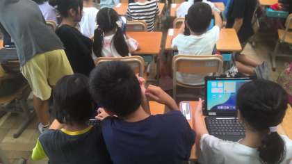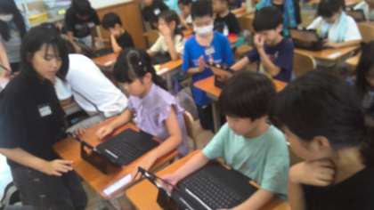 今日のチャレンジタイムに、1年生のタブレットの設定のお手伝いをしました。時間の終わりには、1年生は自分でパスコードを打てるようになりました。