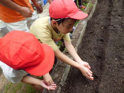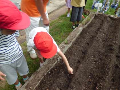 地域の方と一緒に大根の種を植えました。子どもたちは、丁寧に種を植えることができました。大きく育ってほしいです。