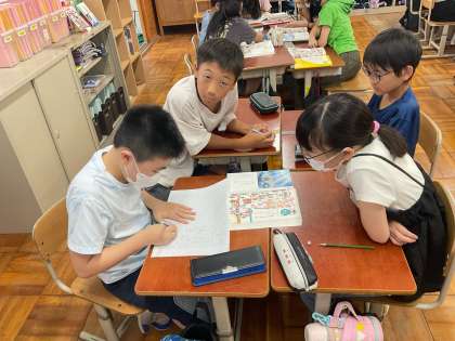 国語科では、5年生で学習した漢字の復習をしました。できるだけたくさんの漢字を使って文章を書きました。