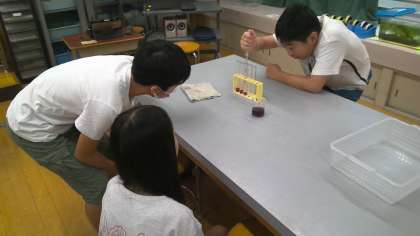 今日は、野菜の汁を使って酸性・中性・アルカリ性を調べました。