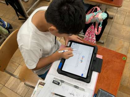端末に入っているコミュニケーションカードにちょっとした英語の文をさっと書くことができ、とても便利です。
