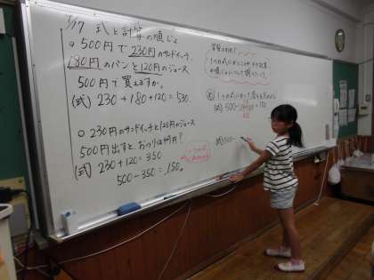 今日の学習では、( )を使った式について、3年生の学習を踏まえながら復習していきました。( )を使う式と使わない式では答えが変わってしまうことに驚きを感じている子どもたちもいました。