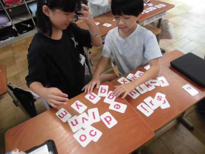 今回の外国語活動では、3年生から学習しているアルファベットの大文字に続き、小文字について学習をしていきました。子どもたちは順番に並べていく活動を通してアルファベットに親しんでいる様子でした。