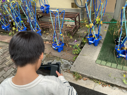 1年生の育てているあさがおに種ができています。子どもたちは中を見て、「たねだよ。」と驚きながらも嬉しそうでした。