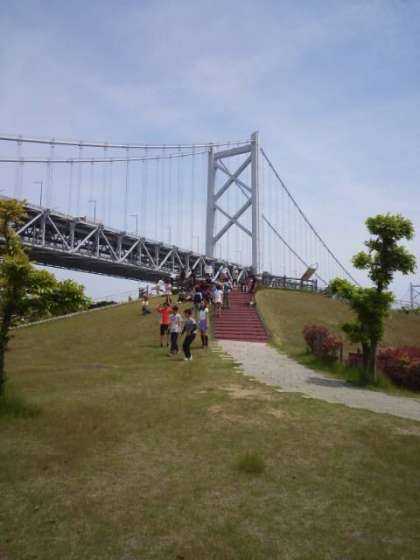 与島で学年記念写真を撮りました。瀬戸大橋が間近に大きく見えました。あとは学校に向かいます。たくさんの思い出をふりかえりながら帰ってきたいとおもいます。
