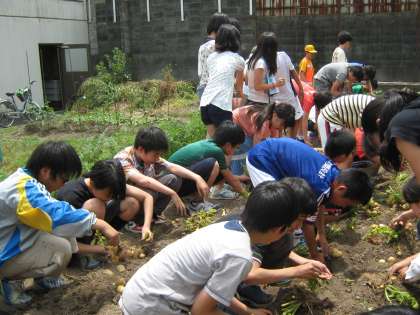 こうして小学校で野菜を収穫するのも数少なくなってきている6年生。