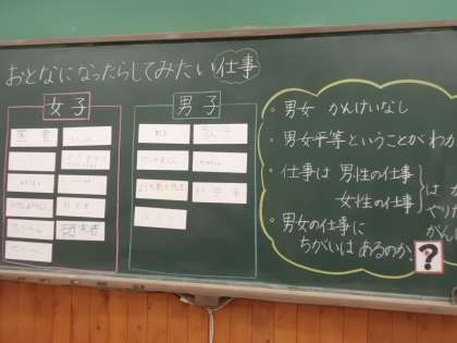 そこで,今回は将来なりたい仕事を一人ずつ書いて掲示した後に,男女をひっくり返しました。