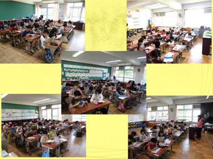 1限目始業の前に、みんながよく知っている曲の優しいオルゴールの音の放送の元、朝読書・朝の活動が行われています。児童は毎日の習慣で音楽が流れると自然と読書などを始めています。とても穏やかな時間が流れています。