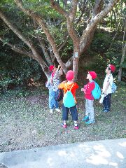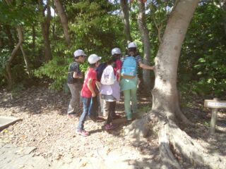 グループごとに問題を解きながらポイントをまわります。みんな元気にたくさんの自然の中を駆け巡っています。