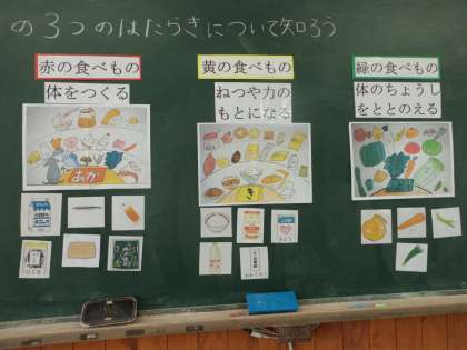 「食べ物の3つのはたらきについて」をテーマに食に関する学習をしました。