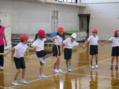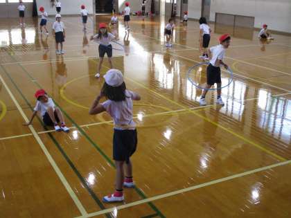 今日は体育の学習で,フラフープを使いました。