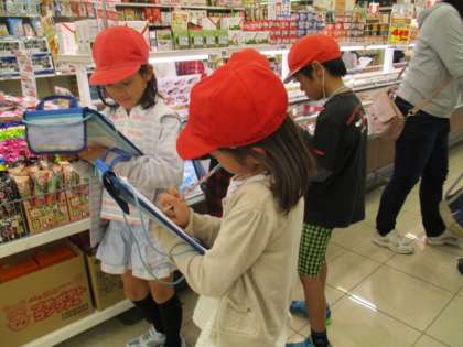 10月6日,火曜日に社会科の学習で校区のスーパーマーケットのひみつをさぐってきました。とくに,どのようにしてたくさんのお客さんに買いものに来てもらえるようにしているのかをめあてにして見学に行きました。「店が広くて買い物がしやすいよ。」「品物が見やすく,置き場所を工夫してあるから,たくさんの人が買いにくるんだ。」「割引きとコーナーの看板は見やすいように高いところにあったよ。」など,いろいろなことを発見することができました。これから,調べてきたことをリーフレットでまとめて発表する予定です。