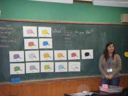 この日は、「What ○○○ do you like?」という表現を使ったチャンツをみんなノリノリで学習しました。