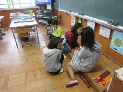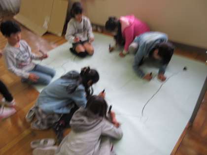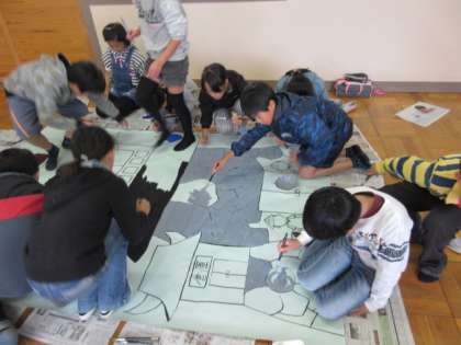 自分たちのデザインからできた背景作りに,みんなやる気まんまん!