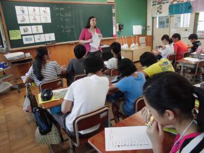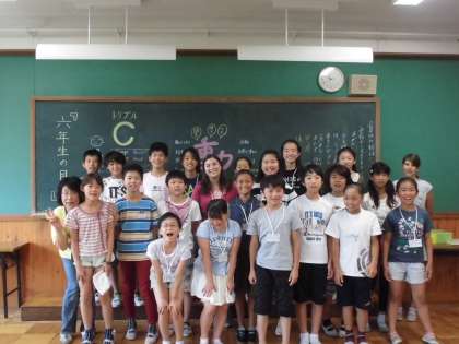 最後に英語と日本語でのあいさつを言ってもらい,感動した子ども達。