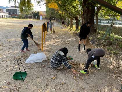 今日は、1組が落ち葉拾いをしました。みんなで協力して、たくさんの落ち葉を集めることができました。