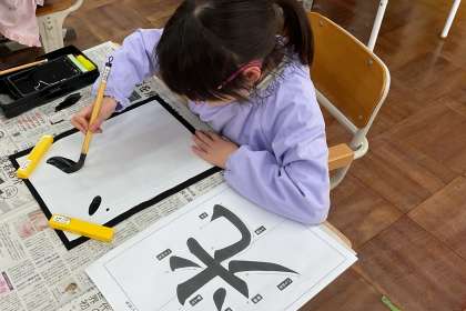 3年生は書写の学習で「光」という字を書いていました。もう、習字にも慣れてきて、複雑な字もバランスをとって書けています。