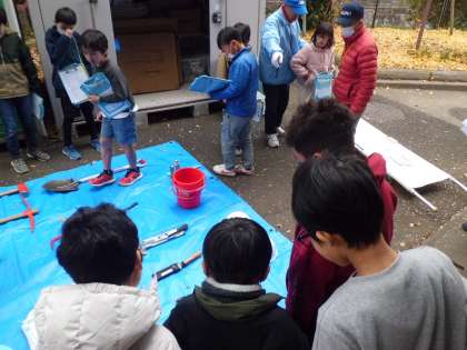どんなものが小学校の倉庫に備蓄されているのか、子どもたちは興味深そうに調べていました。
