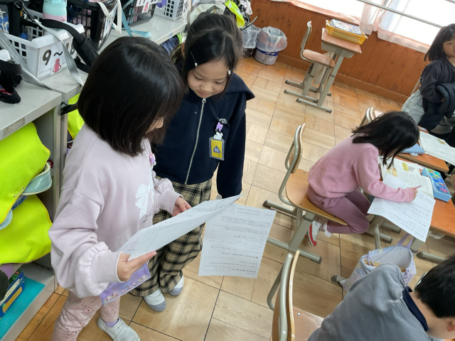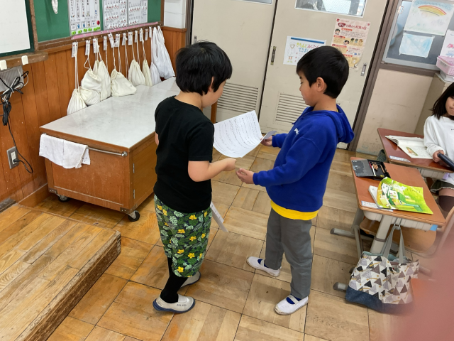 うまれたときの様子を比べて読んだ感想を、友だちと伝え合いました。