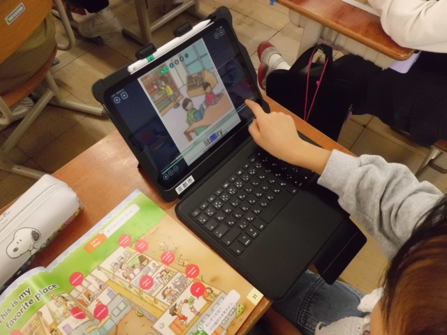 外国語活動で、[This is my favorite place.」の学習を進めています。