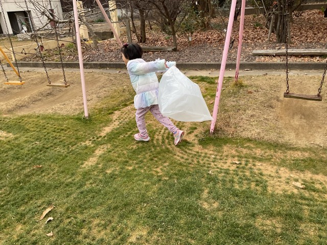 生活科の学習では、冬の季節を感じる学習をしました。冬は「風が強いから、風を集めたい」と子どもたちから声が上がり、運動場で袋に風を集めました。「風が集まったよー。」と嬉しそうに走る子どもたちは、冬の季節の良さを感じていました。