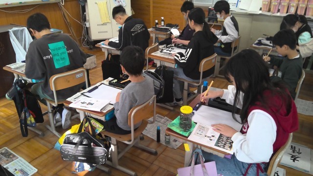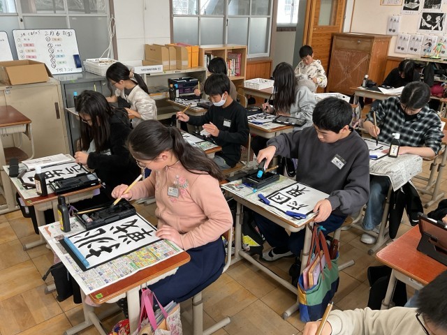 作品展に向けて、自分の好きな言葉や大切にしたい言葉を毛筆で書きました。