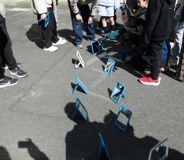子どもたちは「何度はね返しても真っ直ぐ進むね!」と鏡の枚数が増えても、光が真っ直ぐ進むことがわかりました。