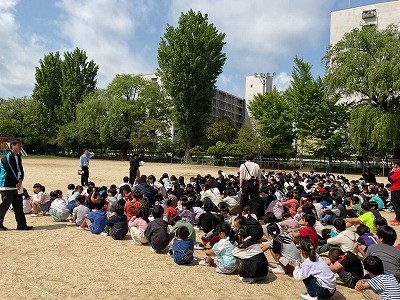 1年生にとっては初めての避難訓練でしたが、静かに避難できていました。