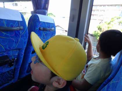 今日はまちにまった科学センター学習。バスにのって科学センターへレッツゴー!