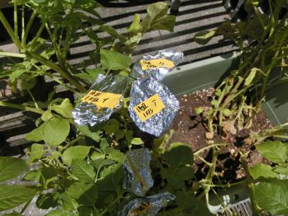 天気の良い日に葉にアルミホイルを巻きました。