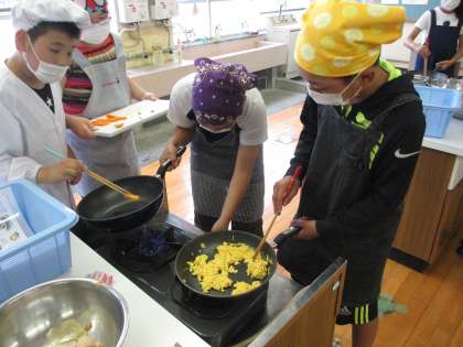 6年生は,7日に調理実習を行いました。今回つくったのは,いろどりいためとスクランブルエッグです。子どもたちは,グループごとに役割を分担し,野菜を切ったり卵を痛めたりしました。どのグループも美味しく作ることができました。ぜひおうちでも作ってみてほしいと思います。