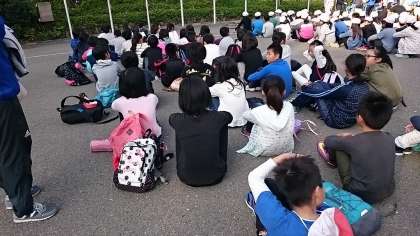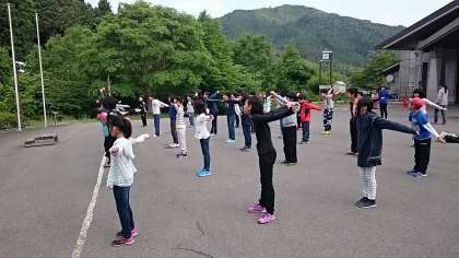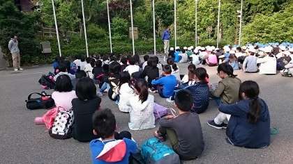 他校の子どもたちと合同で朝のつどいを行いました。