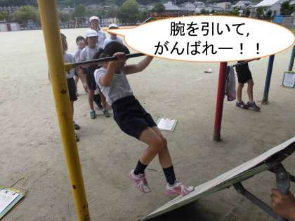今日の体育は,鉄棒をしました。2020年の東京オリンピックを目指す子どもたちは,真剣に授業に取り組んでいました。それぞれ,自分が回るイメージを持って,鉄棒を握りしめ回転していました。応援の声も,校庭中に響き渡り活気あふれる時間となりました。