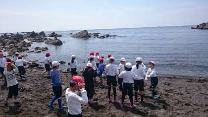 水族館の職員さんから注意を聞いてから、磯観察スタート!