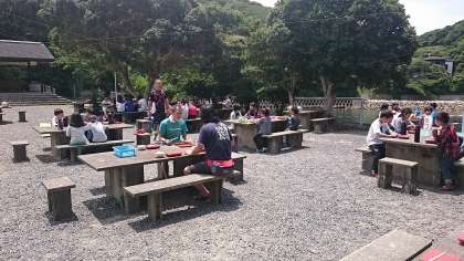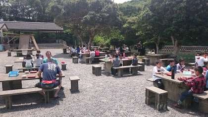 今日のお昼ご飯は野外炊事場で食べます!