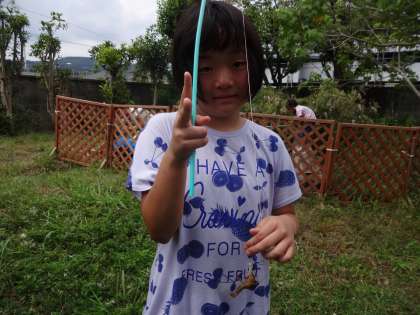 焼いている間は,ドリームトープにいる,ザリガニ釣りを楽しみました。