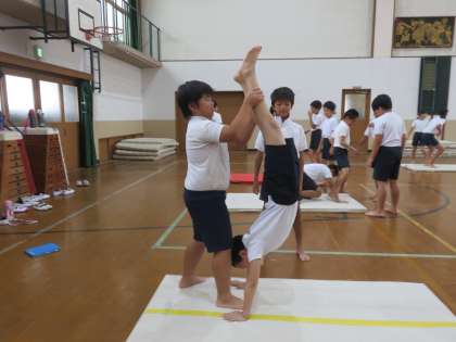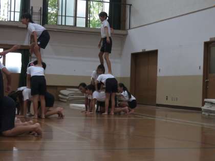 今日はピラミッドという技に挑戦!初めての技だったので,緊張しながらの挑戦でしたが,みんなで息を合わせて成功させることができました。