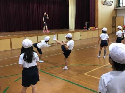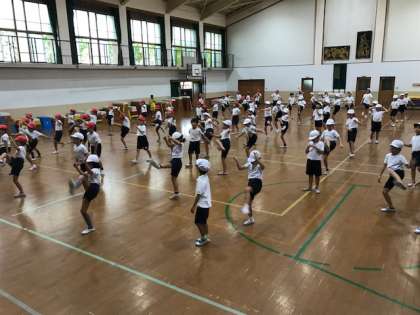 5・6時間目,体育館から軽快な音楽と元気な声が聞こえてきたので体育館を覗いてみると,3・4年生が団体演技・競技「西野Frontier」のダンス部分の練習をしていました。
