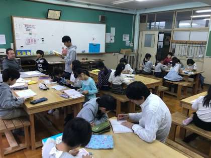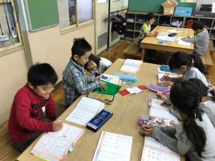 朝から小雨が降る中,「土曜学習会」(漢字学習)には1年生から6年生までたくさんの児童が出席しました。