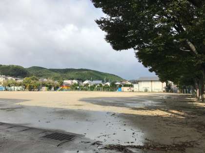 西野小学校も台風による校舎への被害は見かけられませんが,運動場や中庭には折れた木の枝や落ち葉が散乱しています。台風の風の強さを物語っています・・・