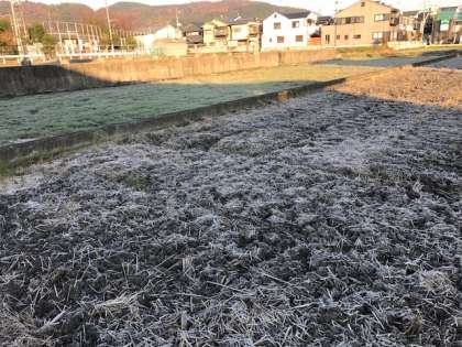 通学路の田畑や駐車場のフロントガラスも霜が降りて,気温の低さを物語っています。