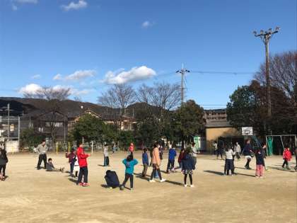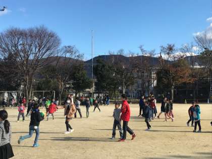 空気は冷たく,風も強かったですが,縦割りはグループごとに決めた遊びを広い運動場を目いっぱい使って,楽しい時間を満喫しました!