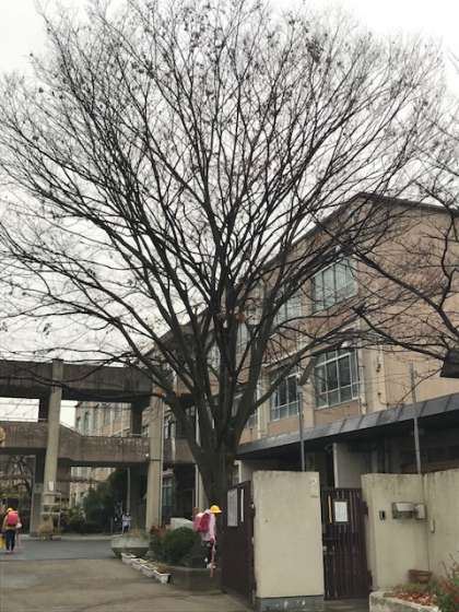 写真の校門付近の大きな木もほとんど「葉」を落としました。いよいよ冬本番です!
