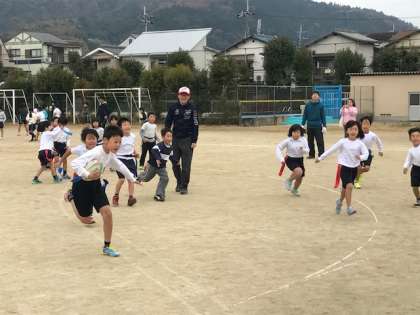 おやじさんも先生も子どもたちの声援を受けて懸命に頑張りました!