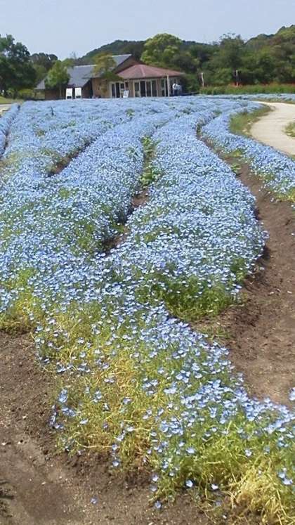 きれいな青空が広がり,花のじゅうたんに埋め尽くされています!
